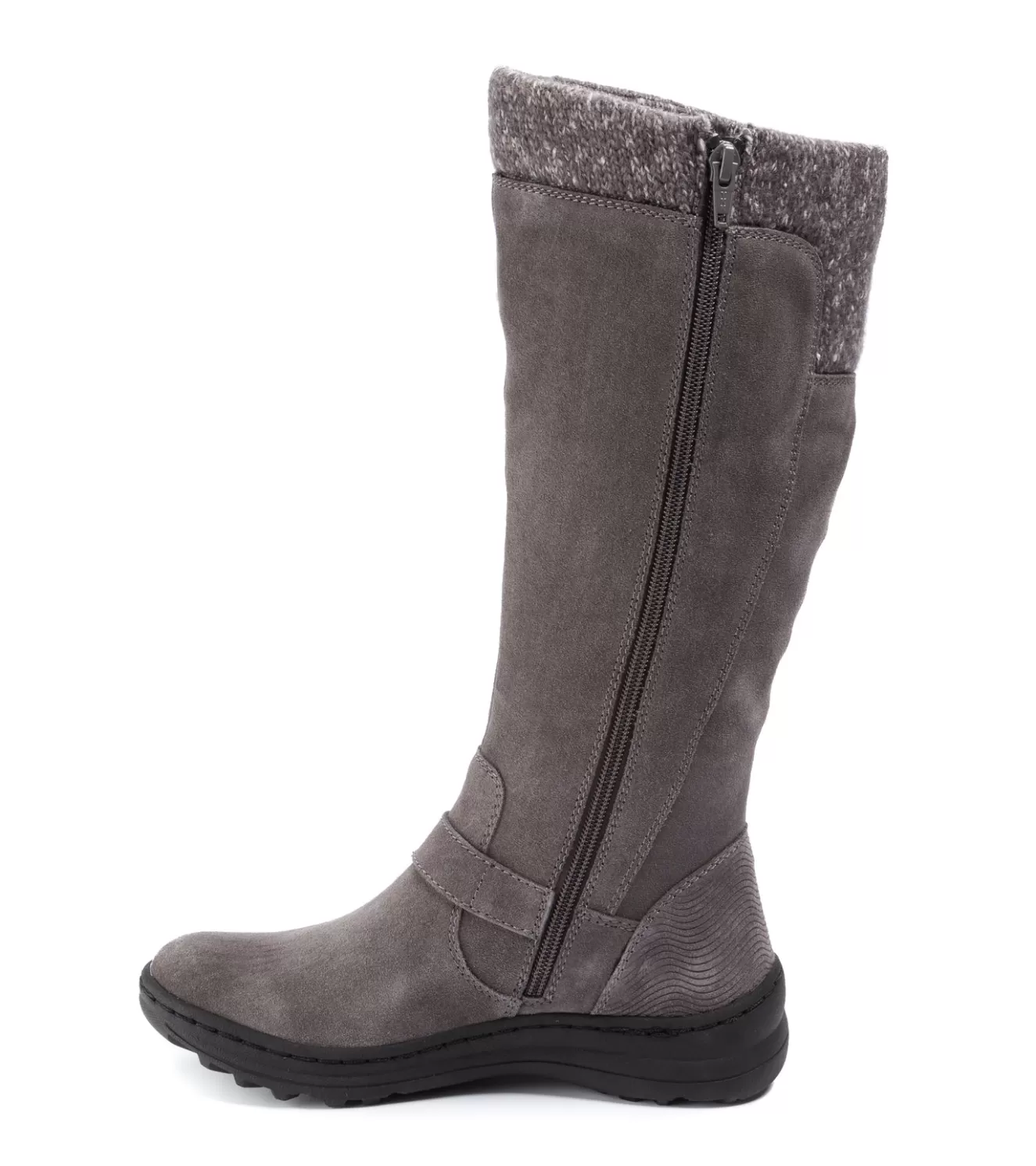 Cozy vibes are yours in the Adele Cold Weather Boot from Baretraps! This functional boot is full of comfort features to keep you moving when the conditions get harsh. Weatherproof Technology is water resistant to help keep your feed dry. The style factor is high with an exposed zipper, buckle and button details, and an adorable sweater cuff. The substantial sole is slip resistant to keep you steady no matter what the weather report says.
