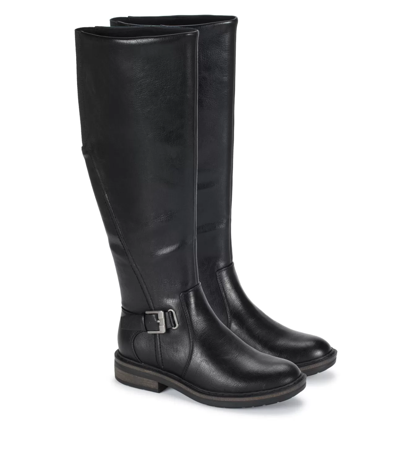 Soak in all the Fall season has to offer in the Baretraps Autumn Wide Calf riding boot. This tall shaft boot is constructed of premium synthetic materials and features a zippered closure, a chunky block heel with treaded sole and a fashionable buckle closure.