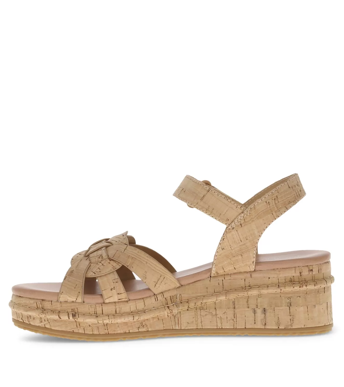Take your summer look up a notch with the Baretraps Lena wedge sandal. Featuring a wrapped 1.25 in platform and an open toe design for a breezy touch with loads of comfort. The hook and loop closure ensures a secure fit. Crafted with care from man-made materials, with a cork midsole, these sandals are both fashionable and pair well with any spring or summer outfit.