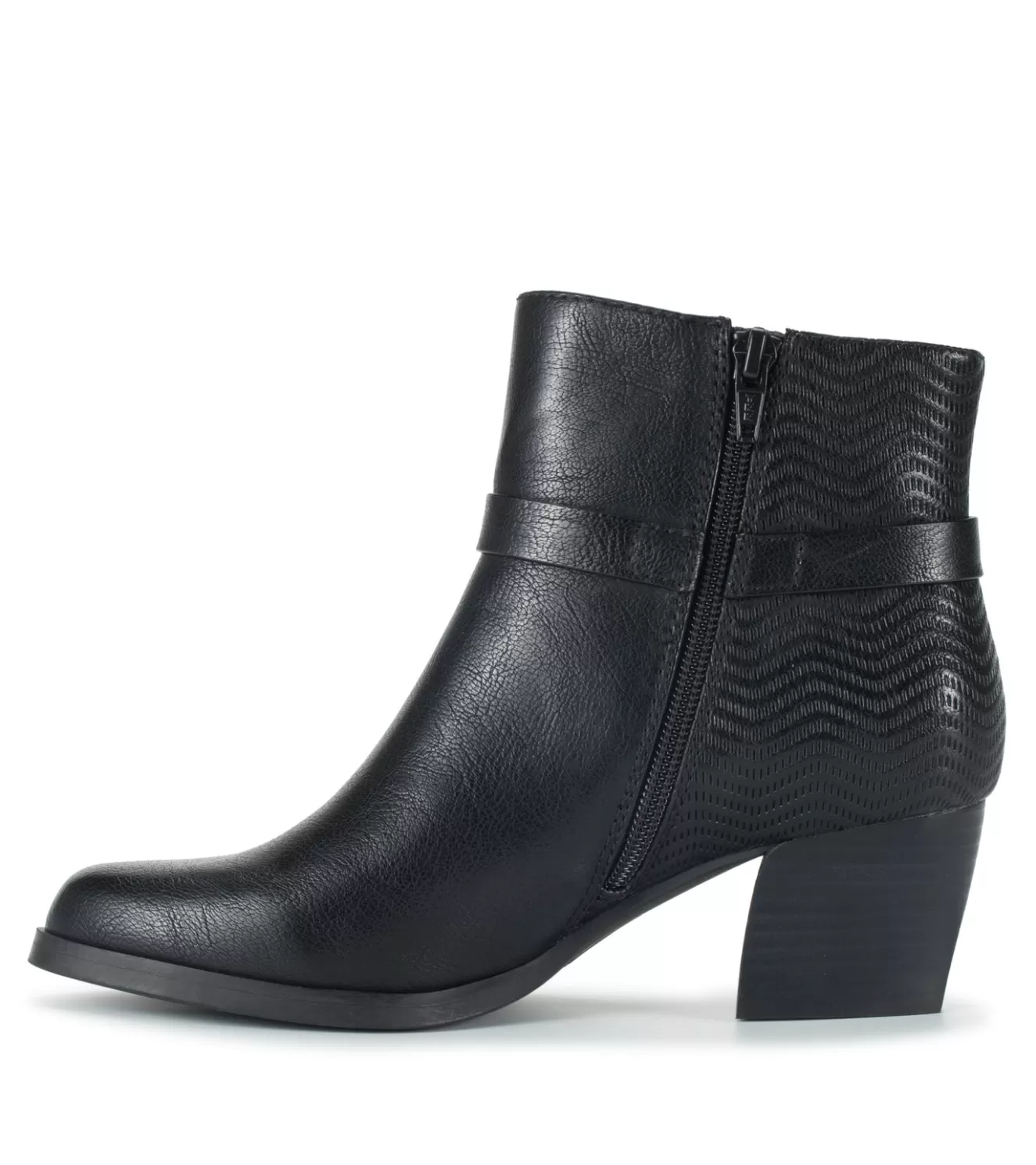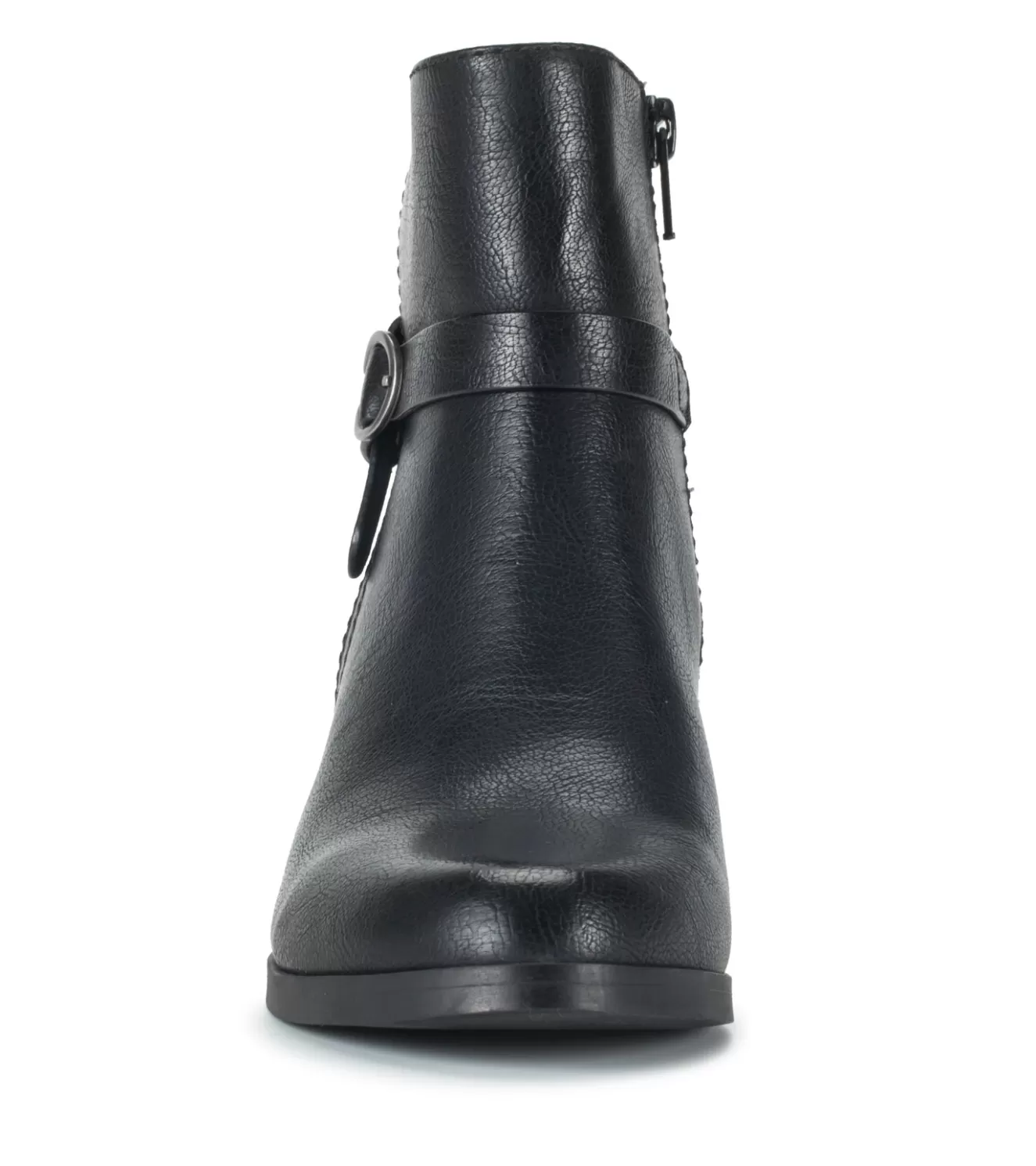 We all have different sides to our personalities. So, shouldn’t our footwear also reflect that? Get your Western fix and your need for contemporary flair with the Baretraps Linda ankle bootie. A wraparound buckle detail brings the two sides together for a look that’s both cohesive and creative. The zipper and flexible, slip-resistant outsole contribute convenience, comfort and traction. With a comfy cushioned insole and supportive block heel this one shoe can take you from the office to the weekend without missing a beat.