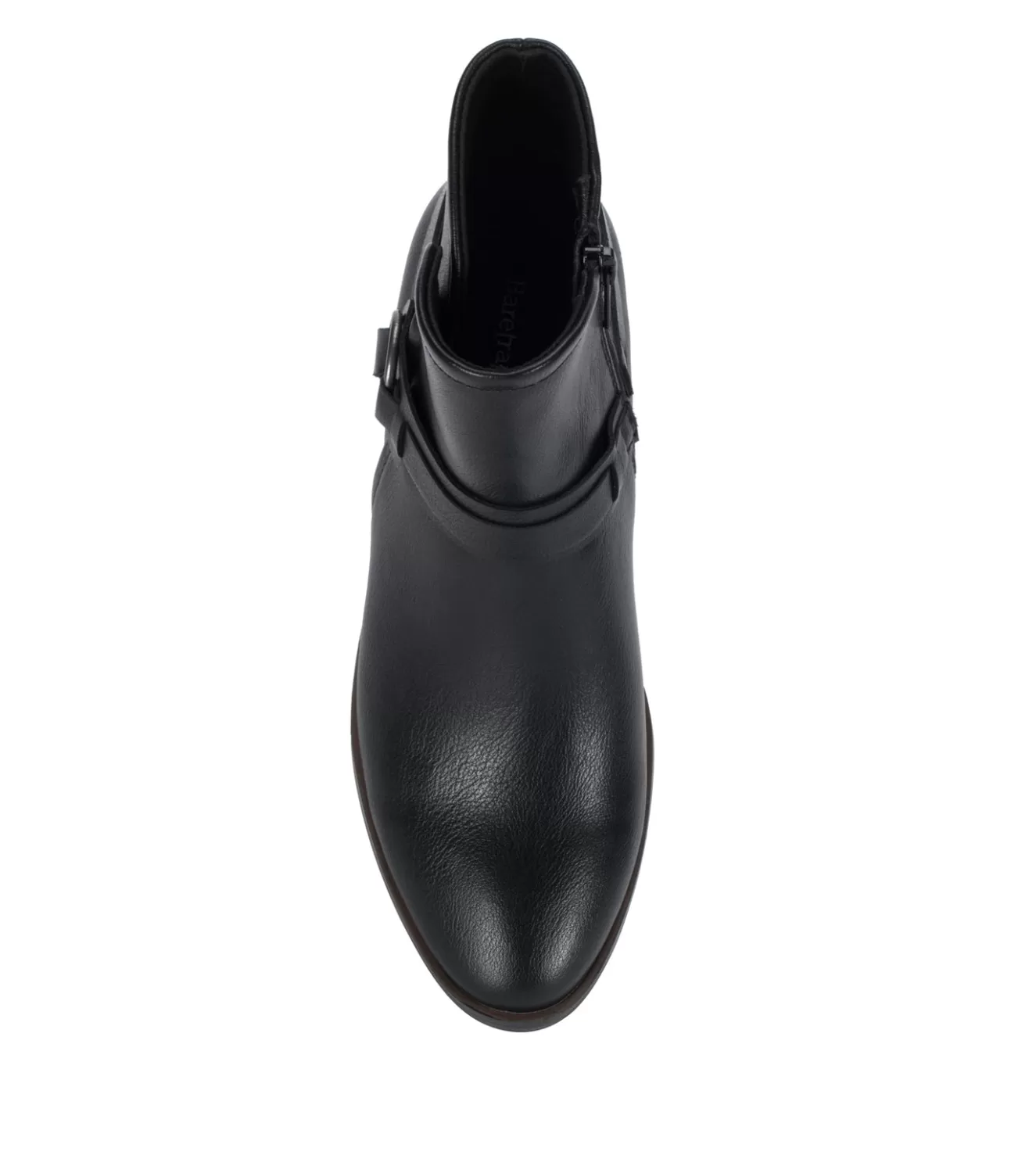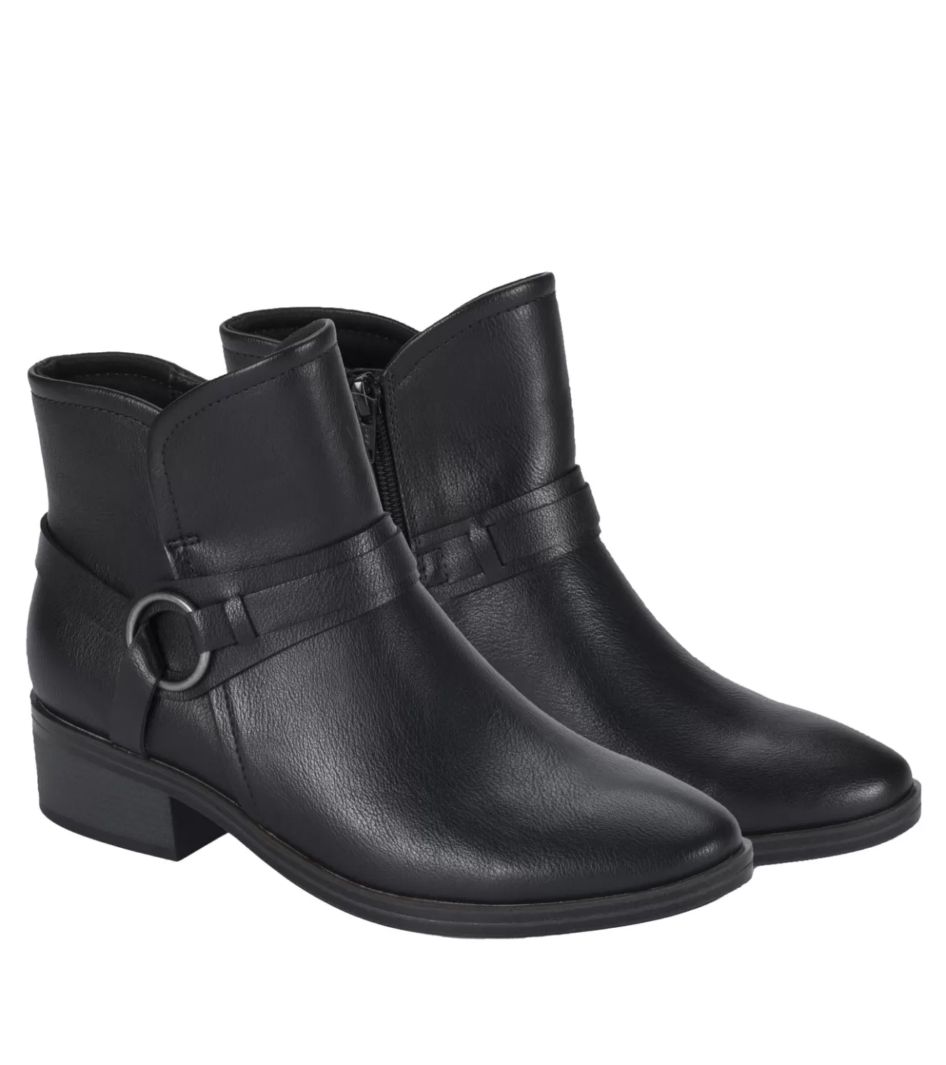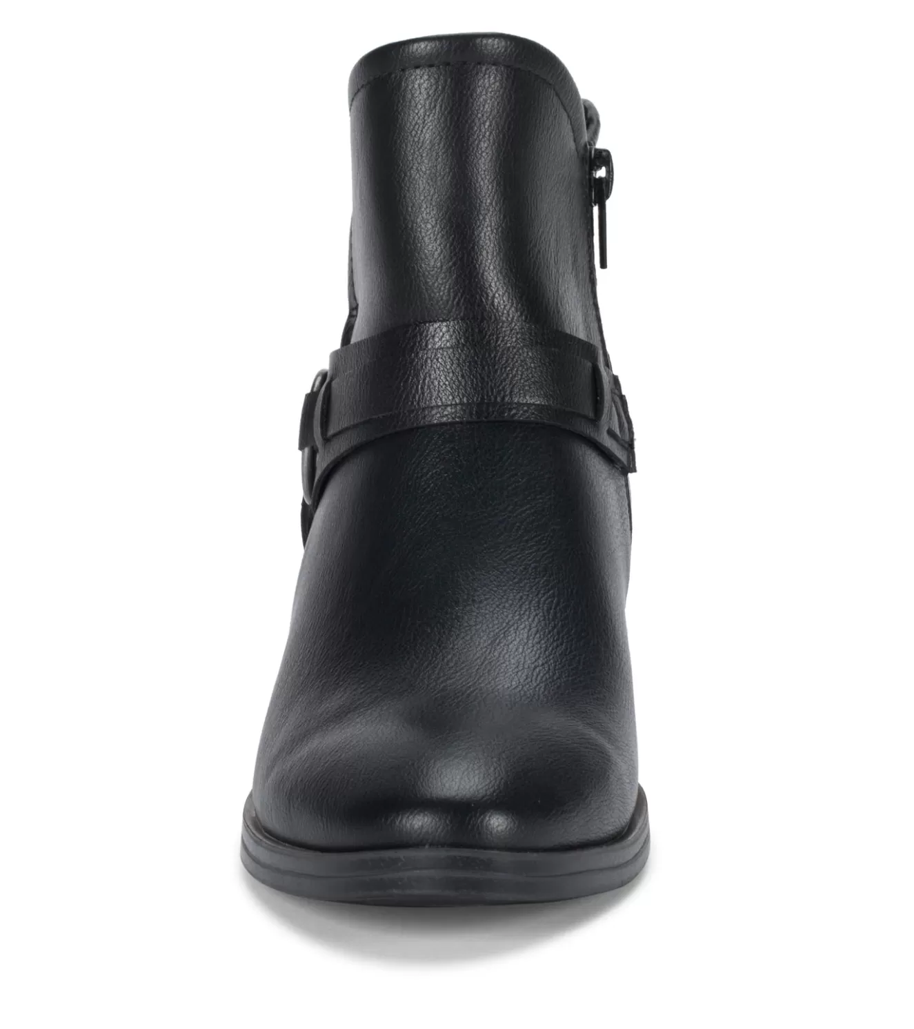 High ankle boots equal high fashion. The Baretraps Marshall ankle bootie seamlessly combines the comfort insoles Baretraps is know for with a stylish block heel, a synthetic upper construction with a cross heel buckle accent and side zippered entry for easy on/off.