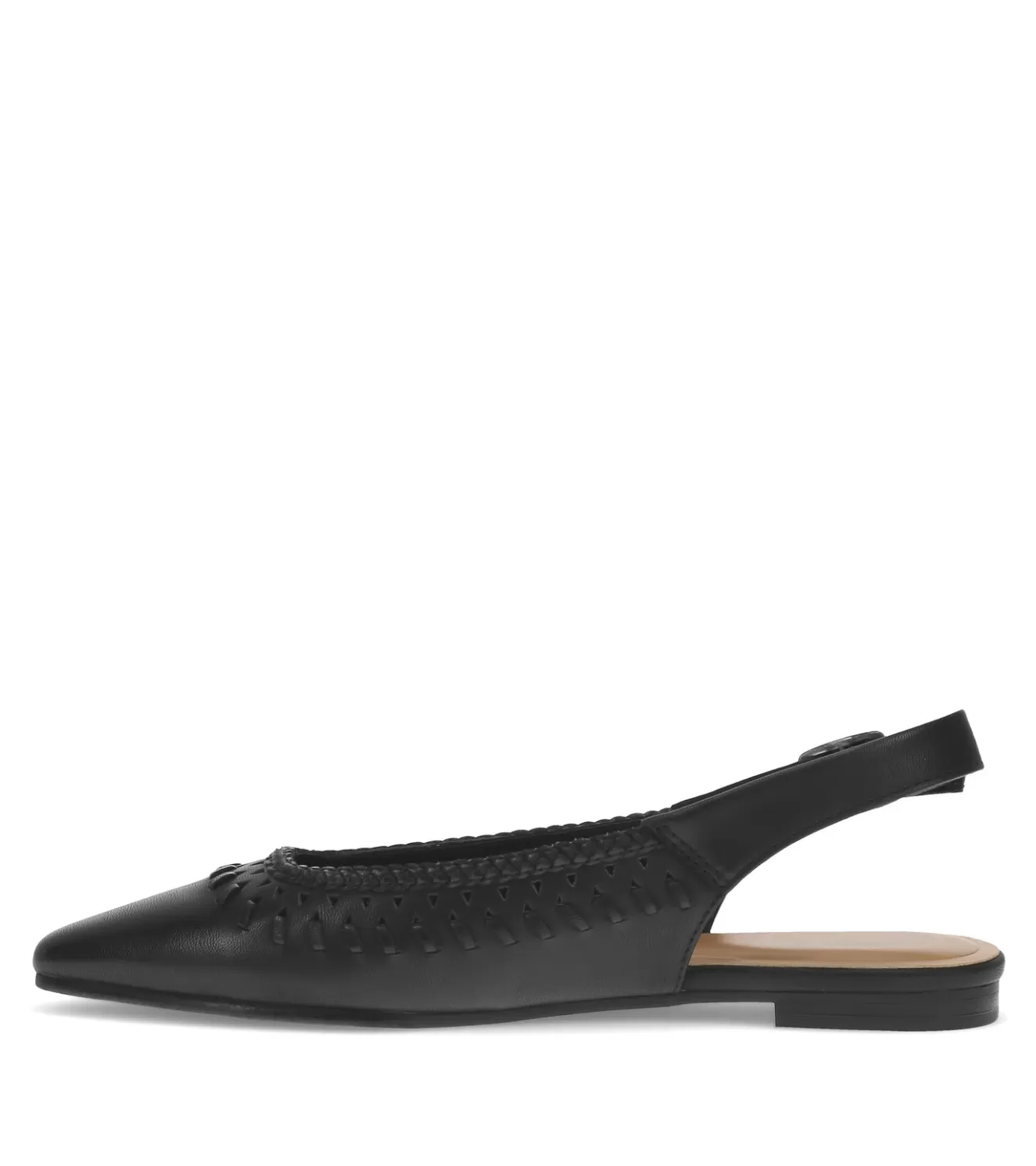 Let everyone know you mean business with Baretraps Rachel slingback flat. Featuring a buckle closure and woven details that add flair to these sophisticated flats. The faint block heel ads just the right amount of lift and the cushioned insole provides comfort. All while the flexible and lightweight outsole ensures easy movement and slip-resistant stability. The pointed toe design is perfect under a pair of smart slacks or some flared jeans.