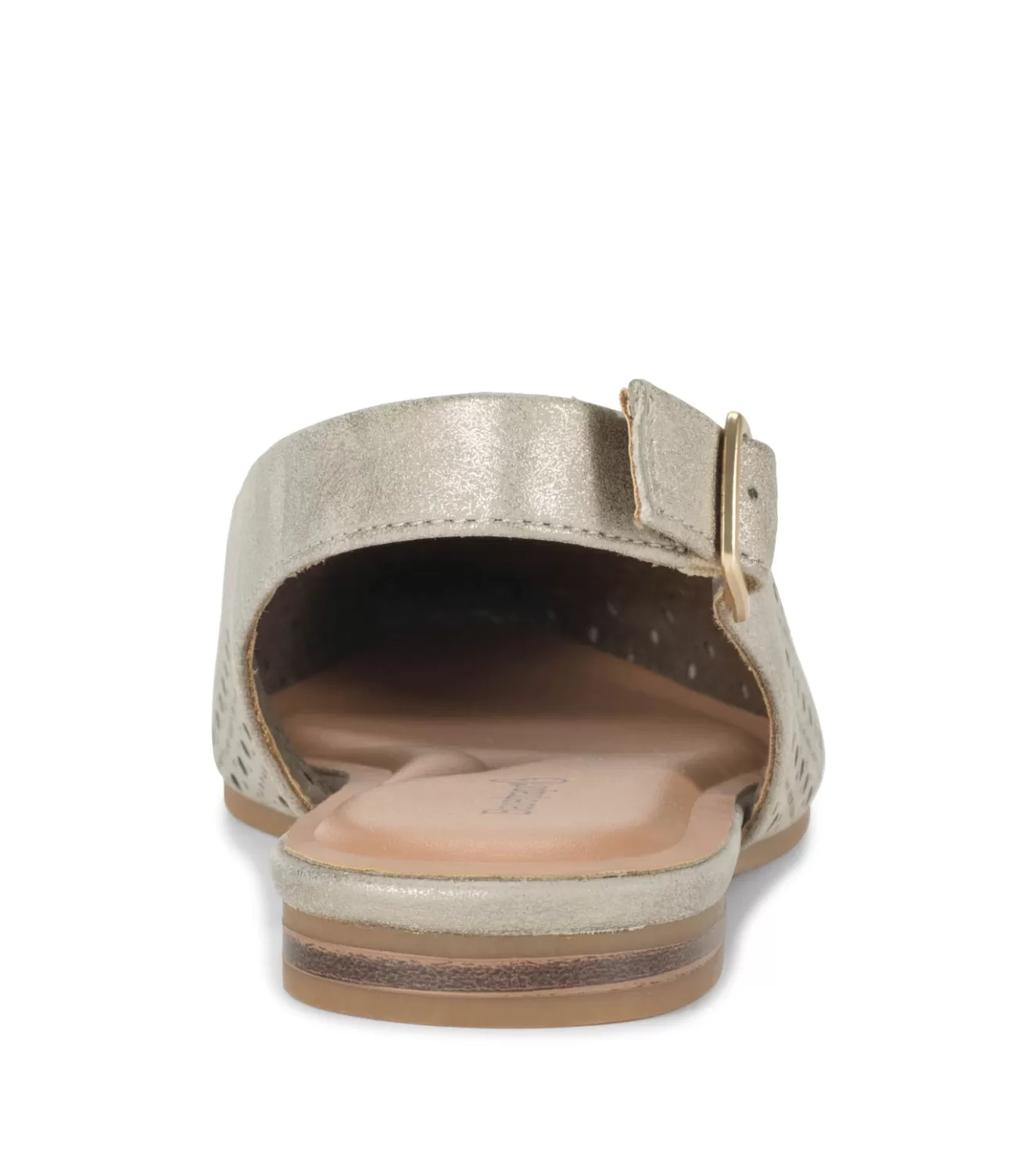 Triple your fun with the Baretraps Riva pointed toe slingback. A tailored style that combines three of our favorite shoe elements. It starts with the pointed toe, which creates an elongated silhouette on which intricate laser-cut perforations shine. Adding to the streamlined look, the flat rubber sole with ½ inch-heel provides stability and flexibility. A slingback strap with buckle closure is a classy touch and makes for a snug fit. Revel in the comfort of hundreds of form-fitting bubbles that make up the soft and responsive Bubble Tech so these shoes can do the double duty of a workday and date night.