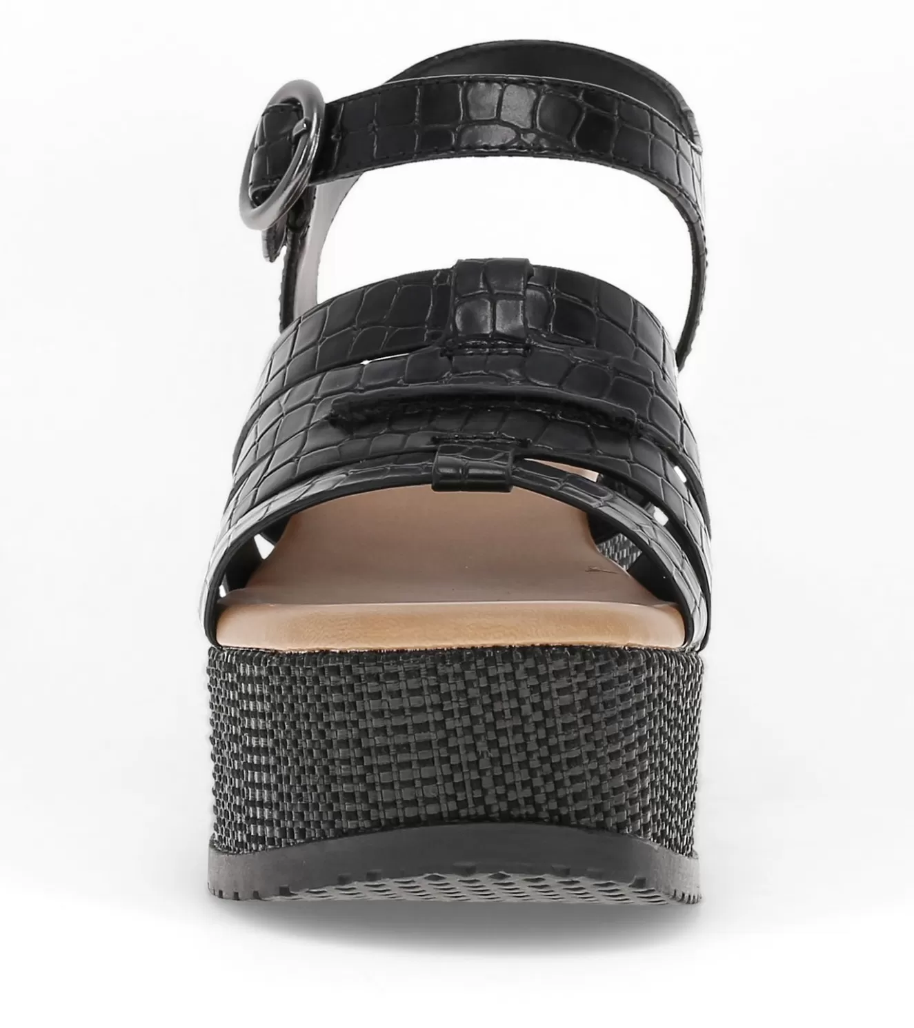 The Baretraps Savannah wedge sandal’s 3-inch heel and 2-inch platform you can add height to your look no matter if you’re heading downtown or just having some down time with friends. A Southern charmer, the thick straps on the upper and buckle-closure ankle strap provide an understated elegance as well as a sure fit. The comfort of the cushioned insole and versatility of the flexible rubber outsole make it easy to pair these with casual day-night outfits.