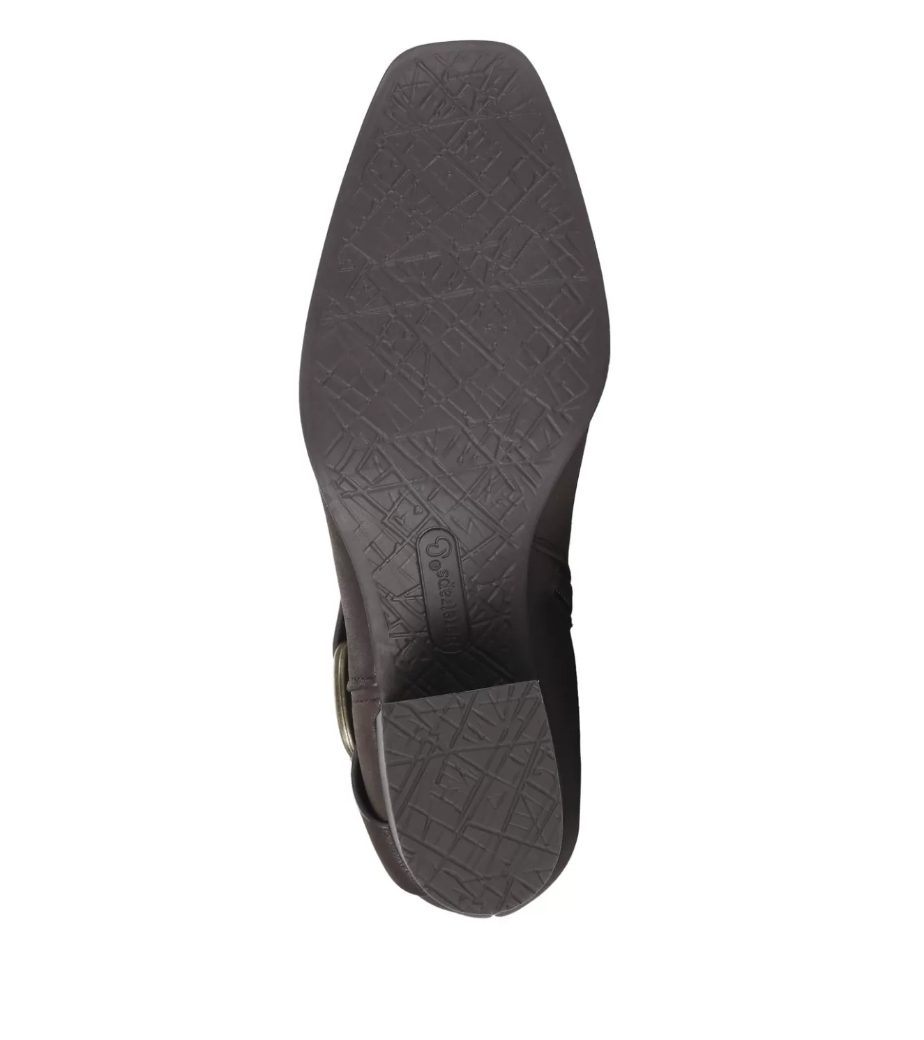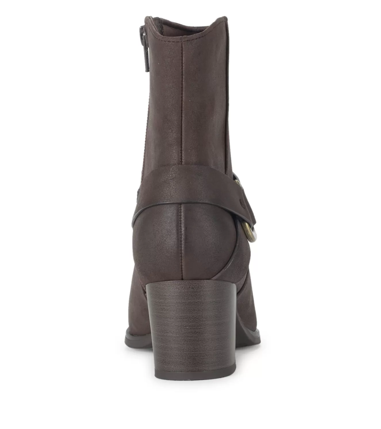 Square toes are back in a big way with the Baretraps Tiana ankle boots. They make a bold fashion statement and provide added comfort thanks to the roomy toe box. The classic-modern fusion is evident in the playful horseshoe bit holding together the traditional decorative strap, which also shows off its detailed craftsmanship. Great for commuting, flexible outsoles put a bounce in your step along with its comfort insoles. A must-have for fall and beyond, the dark colors complement the season’s orange, red, yellow and brown hues.