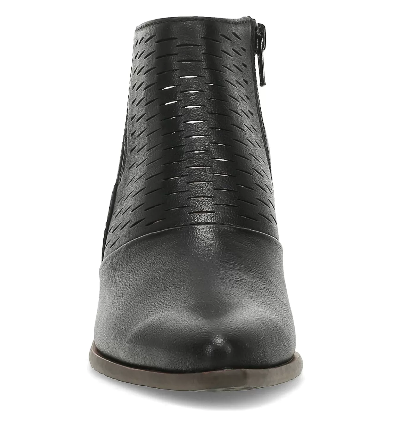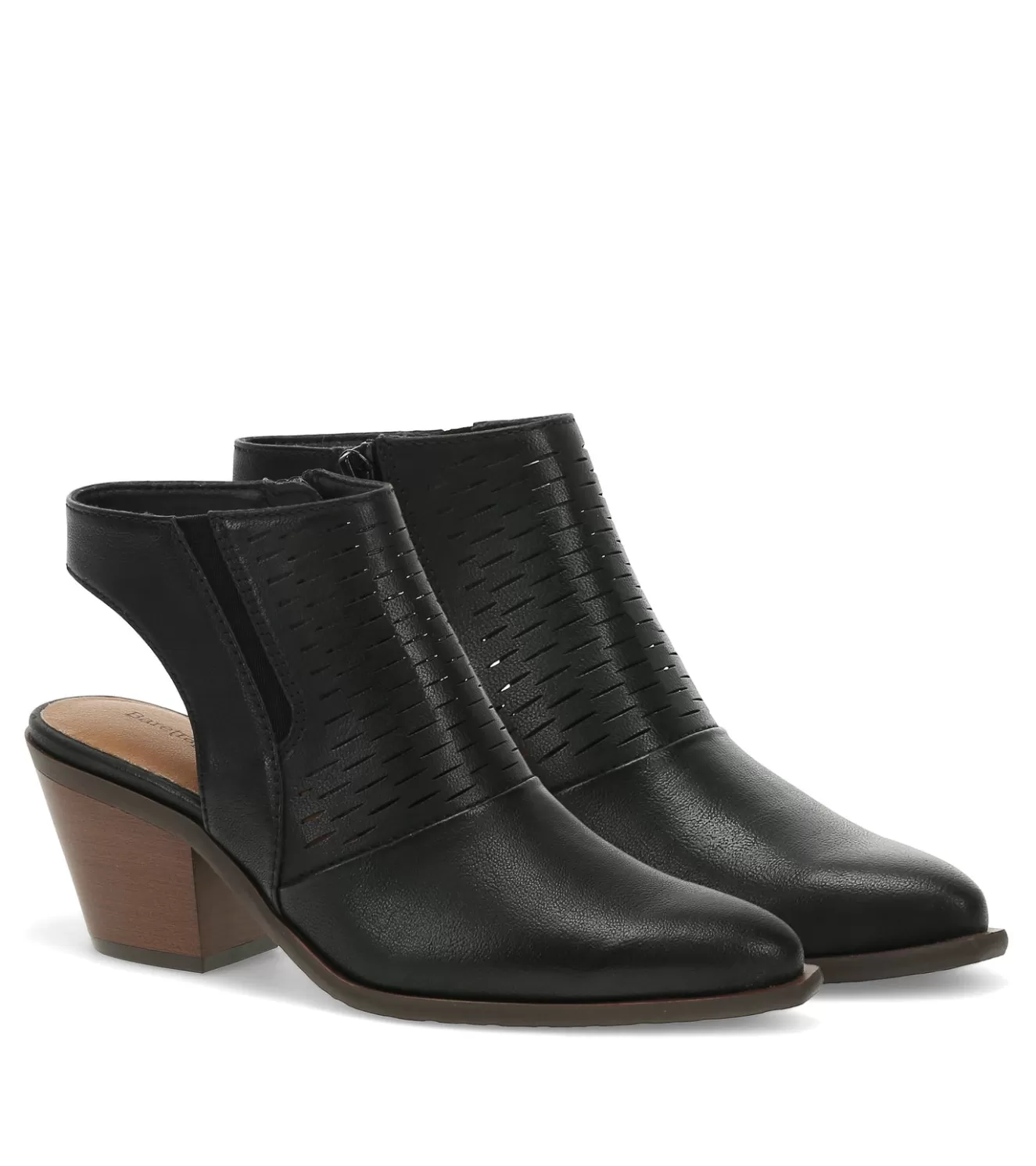 The Baretraps Yangley Open-back Shootie is crafted with premium vegan materials and offers uncompromising comfort and sophistication.The cushioned insole provides all-day support, while the block heel delivers a confident, modern look. Slip into the Yangley with ease thanks to the convenient inside zipper closure and prepare to turn heads with the eye-catching laser cutouts adorning the upper, adding a touch of contemporary flair to the pointed-toe silhouette.The Baretraps Yangley Open-back Shootie is the perfect blend of style and substance, seamlessly transitioning from the office to a night out. Experience the difference of thoughtfully designed animal-friendly footwear that keeps you comfortable and confident. Invest in the Yangley and elevate your wardrobe today.