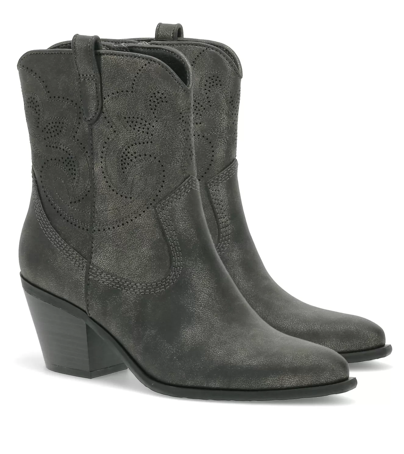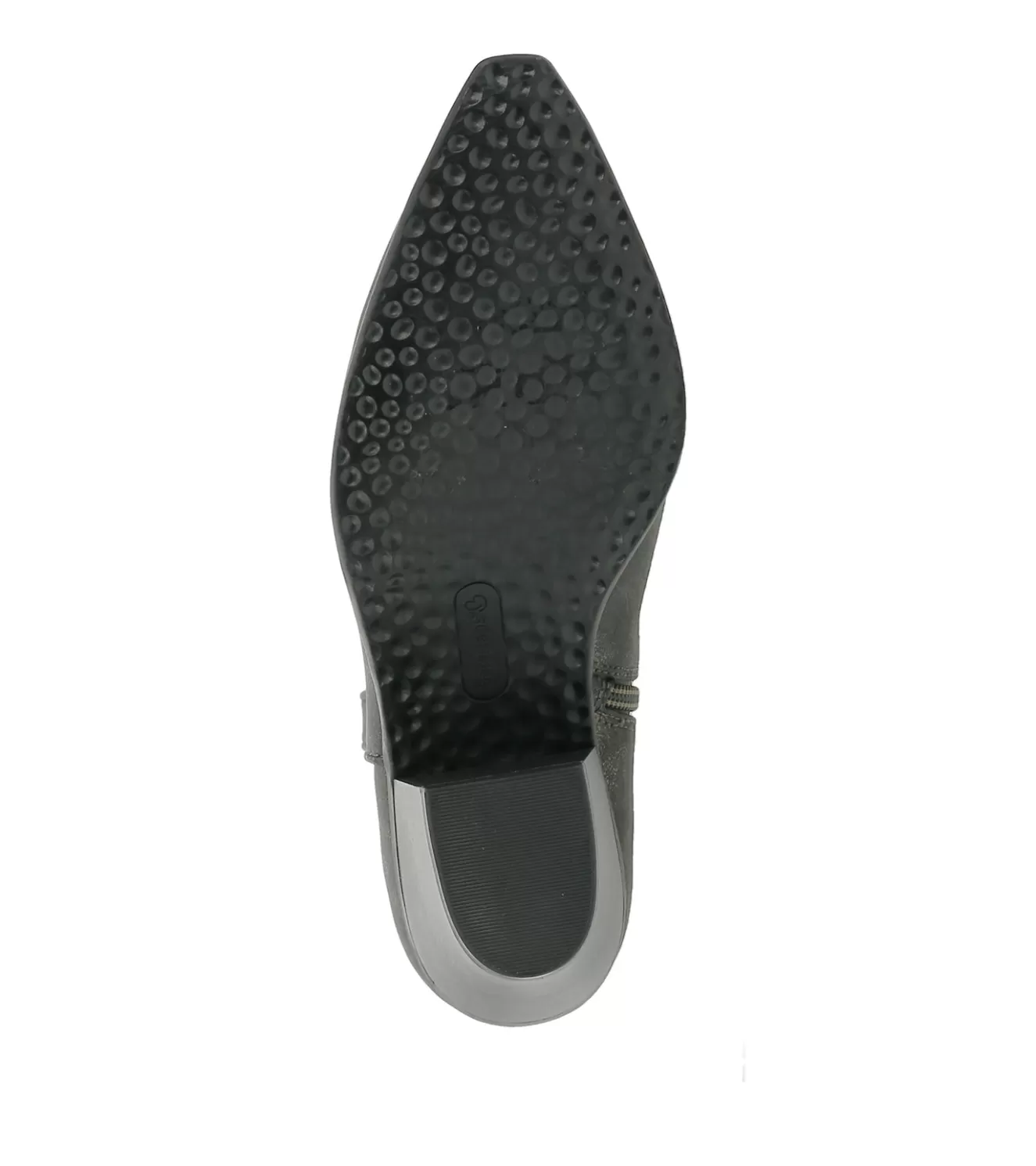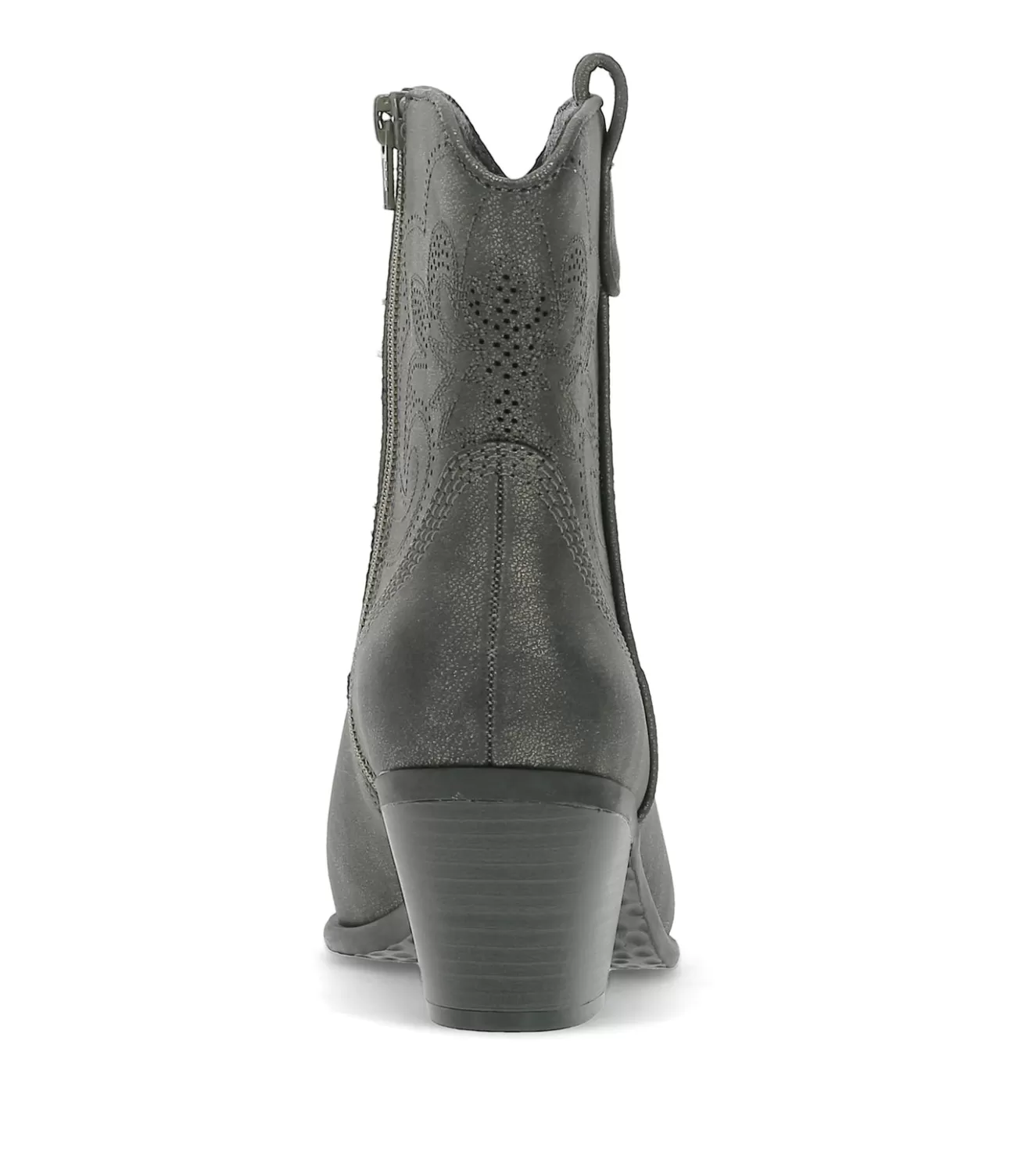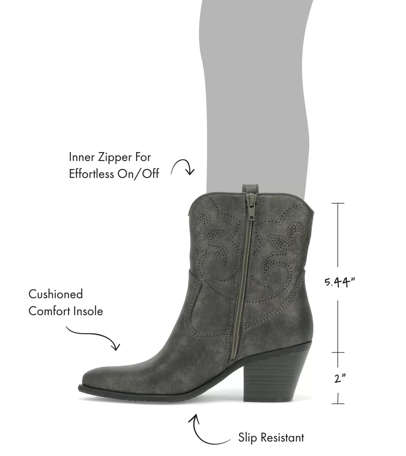 Uncover the rugged elegance of Baretraps Yenni Western Boots. Crafted with a sleek synthetic upper, these boots seamlessly blend modern style and timeless appeal. The inside zipper closure ensures easy on and off, while the cushioned comfort insole and lightweight, flexible outsole provide all-day wearability. The microfiber footbed adds a plush, supportive foundation, keeping your feet comfortable through every stride. With an ankle-high silhouette, patterned upper and a classic pointed toe, the Yenni boots exude a refined Western aesthetic that effortlessly transitions from the ranch to the city. Finished with a sturdy block heel, these versatile boots will elevate your look and keep you confidently on the move. Experience the perfect balance of fashion and function with Baretraps Yenni Western Boots – a must-have addition to your wardrobe.